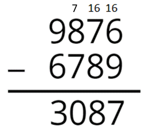 9876 – 6789 = 3087