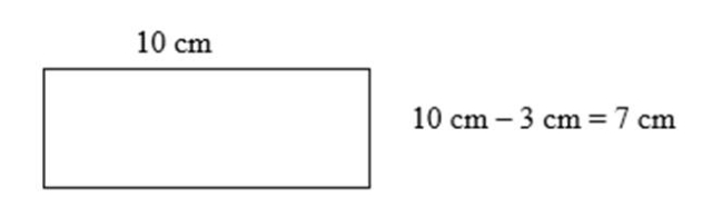 Jeśli jeden bok prostokąta jest krótszy od drugiego o pewną ilość cm, to aby obliczyć jego długość, należy długość boku dłuższego pomniejszyć o tę wartość.