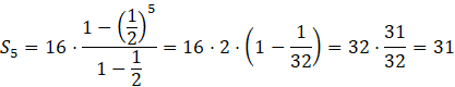 Suma początkowych pięciu wyrazów tego ciągu geometrycznego jest równa 31.