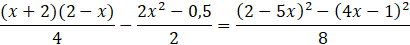 Pomnóż równanie obustronnie razy 8, tak by pozbyć się ułamków. Następnie wymnóż wyrażenia w nawiasach. Zredukuj jednomiany podobne. Oblicz wyróżnik równania, a następnie jego rozwiązania.