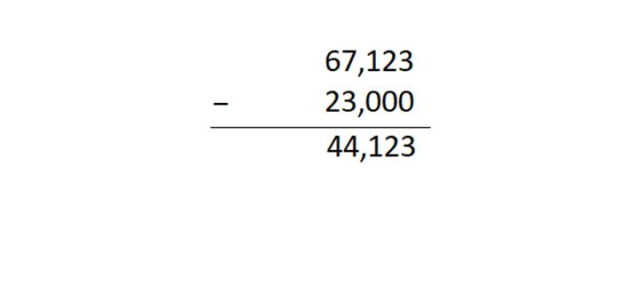 W tym zadaniu musisz obliczyć sposobem pisemnym różnicę liczb 67,123 i 23.