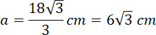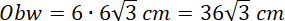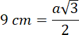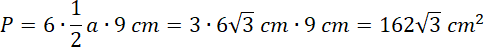 Pole oblicz mnożąc 6 razy pole trójkąta foremnego o boku a i wysokości 9 cm: