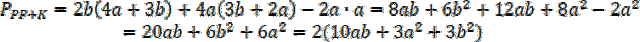Powierzchnię kuchni oblicz odejmując od prostokąta o wymiarach 4a na (3b + 2a) kawałek łazienki o wymiarach 2a na a