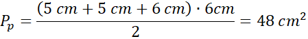 W pierwszej kolejności oblicz pole podstawy. Poprowadź wysokość wychodzącą z wierzchołka podstawy i zauważ, że powstały trójkąt jest równoramienny. Oznacza to, że dłuższa podstawa jest dłuższa od krótszej o długość równą wysokości.
