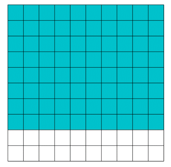 W obu kwadratach należy zamalować taką samą część. 0,8 to tyle samo co 0,80, ponieważ dopisanie zer na końcu ułamka dziesiętnego nie zmienia jego wartości.