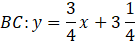 Więc prosta BC zawierająca bok BC wyraża się wzorem: