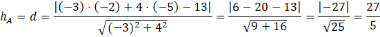 Więc wysokość opuszczona z wierzchołka A, to odległość punktu A od prostej zawierającej bok BC (prosta ta będzie oznaczana jako BC)
