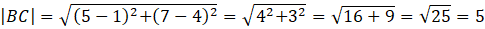 Podstawiając odpowiednio współrzędne B i C otrzymasz wynik: