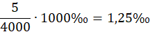 To dzieląc 5 przez 4000 i mnożąc przez 1000‰ otrzymasz szukany promil: