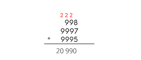 Zapisujemy wyniki dodawania kolumnami. Wynik dodawania jedności pod jednościami, dziesiątki pod dziesiątkami i tak wszystkie liczby. Gdy pojawia się suma większa od 9, to liczbę dziesiątek przepisujemy nad nasze liczby i dodajemy w kolejnym dodawaniu.
