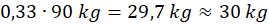 W tym zadaniu ustal, ile wynosi 33% z 90 kg. Wynik podaj z dokładnością do jedności.
