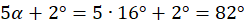 Miary kątów w trójkącie: 18°, 82°, 82°.