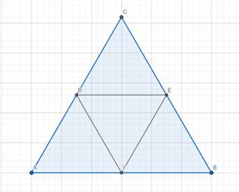 Podziel trójkąt równoboczny na 4 przystające trójkąty.