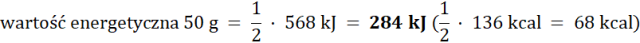 | Wartość energetyczna | 921 kJ (220 kcal) | 568 kJ (136 kcal) |