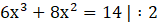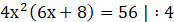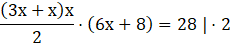 Podstawą jest trójkąt prostokątny, a wysokość graniastosłupa wynosi 2x + 2. Zatem wzór na objętość klocka to iloczyn pola podstawy i wysokości.
