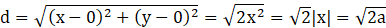 Podaj, ile mierzy długość przekątnej kwadratu którego trzy wierzchołki leżą na osiach układu współrzędnych, a czwarty należy do wykresu funkcji