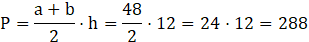 Pole trapezu to połowa iloczynu sumy podstaw i wysokości.