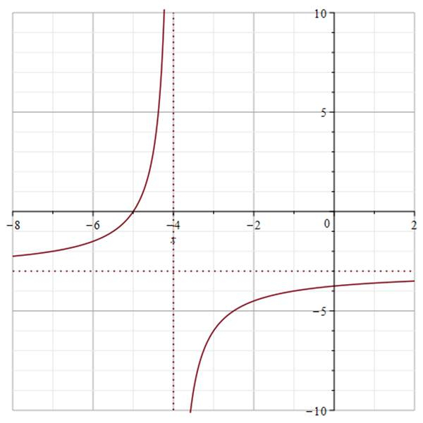. Ostatecznie przesuwasz tę funkcję o wektor [-4, -3]. Dla ułatwienia zacznij od przesunięcia asymptoty pionowej oraz poziomej funkcji, oraz