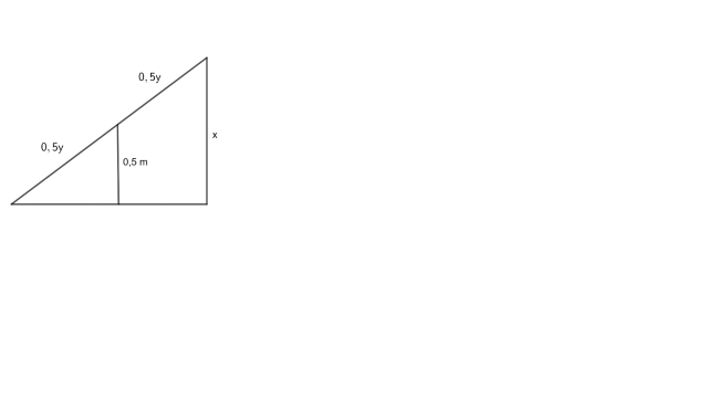 Wiedząc, że podparcie, o wysokości 50 cm, znajduje się w połowie belki oraz długość belki jest niewiadoma, określ, jak wysoko nad ziemią znajdzie się koniec huśtawki, gdy drugi koniec będzie dotykać ziemi.