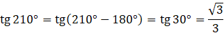 Dane są kąty: 210°, 225°, wyznacz wartości ich tangensów, wykorzystując odpowiednie wykresy.