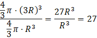Odp. Kula opisana ma objętość 27 razy większą od kuli wpisanej.