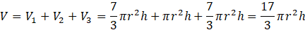 Objętość bryły z rysunku to suma poszczególnych segmentów:
