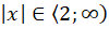 W tym przypadku x jest oddalony od 0 o więcej lub równo 2, więc wartość bezwzględna z x jest większa lub równa 2.