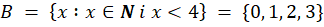 Zbiór B jest zbiorem wszystkich liczb naturalnych mniejszych od 4.