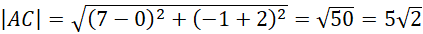 Wyznacz długości odcinków AB, AC i BC na podstawie wzoru na długość odcinka przy wykorzystaniu współrzędnych wierzchołków trójkąta. Jeśli dwa boki trójkąta będą tej samej długości, to jest on równoramienny. Sprawdź przy użyciu twierdzenia Pitagorasa czy trójkąt jest prostokątny.