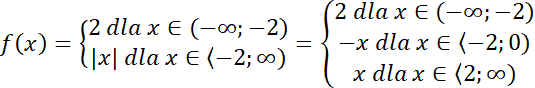 zapisz bez użycia symbolu wartości bezwzględnej, zauważ, że jeśli jest to liczba dodatnia, to jej wartość bezwzględna jest tą liczbą, a jeśli jest to liczba ujemna, to jej wartością bezwzględną jest liczba przeciwna tego, że jedno będzie należało do przedziału