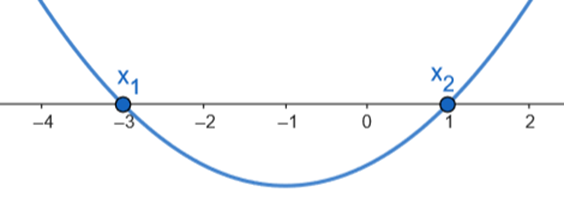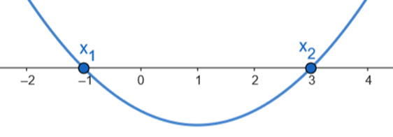 Na koniec wyznaczone rozwiązania zaznacz na osi OX i narysuj parabole o ramionach skierowanych w górę, jeśli współczynnik