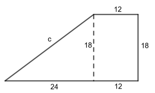 Następnie wykonaj rysunek pomocniczy i skorzystaj z twierdzenia Pitagorasa, aby obliczyć długość dłuższego ramienia tego trapezu.