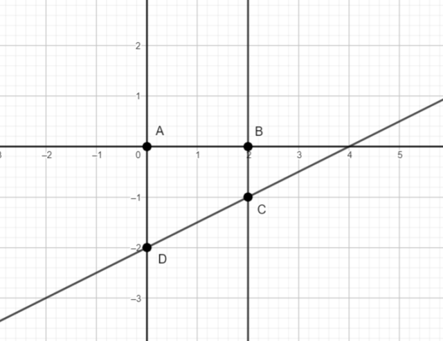 Stwórz szkic pomocniczy. Wyznacz punkty przecięcia prostych. Oblicz długość potrzebnych boków i wykorzystaj wzór , gdzie a,b to podstawy (odcinki AD i BC), a (odcinek AB) to wysokość powstałego trapezu prostokątnego.