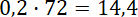 20% liczby 72 to 0,2 liczby 72, czyli