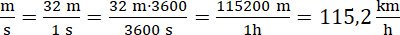Zauważ, 1 godzina to 3600 razy więcej niż 1 sekunda (1 h = 60 min, 1 min = 60 s), czyli gdy czas jest 3600 razy dłuższy, dystans jest 3600 razy większy. Pomnóż przez 3600 licznik i mianownik ułamka, wykonaj mnożenie w liczniku, a mianowniku zamień jednostkę czasu. Na koniec zapisz odległość w kilometrach (1000 m = 1 km).
