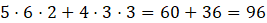 Pan Jacek może wybrać ciemną koszulę na 5 sposobów, parę ciemnych spodni na 6 sposobów i parę ciemnych butów na 2 sposoby. Może on też wybrać jasną koszulę na 4 sposoby, parę jasnych spodni na 3 sposoby i parę jasnych butów na 3 sposoby. A więc wszystkich możliwości ubioru Pana Jacka jest dokładnie 96.