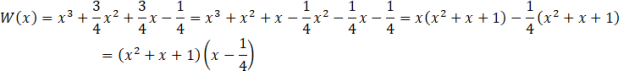 Aby rozłożyć wielomian na czynniki pogrupuj jego jednomiany w dwie grupy. Następnie z każdej grupy wyłącz przed nawias wspólny czynnik, a z całego wielomianu wyłącz czynnik x2 + x + 1. Wielomianu x2 + x + 1 nie możesz dalej rozkładać na czynniki, ponieważ jego wyróżnik jest ujemny.