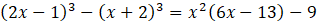 Aby rozwiązać równanie, wymnóż wyrażenia w nawiasach. Następnie przenieś wszystkie jednomiany na jedną stronę i uporządkuj wielomian. Wyłącz przed nawias czynnik x, a trójmian pozostały w nawiasie rozłóż na czynniki. Zapisz otrzymany iloczyn w postaci alternatywy równań liniowych, z których każde rozwiąż niezależnie. Zsumuj otrzymane rozwiązania do jednego zbioru.