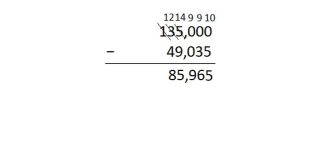 W tym zadaniu musisz obliczyć sposobem pisemnym różnicę liczb 135 i 49,035.
