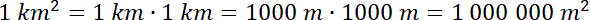 Oblicz, ile metrów kwadratowych to 1 kilometr kwadratowy, a następnie zamień jednostki, mnożąc przez tę liczbę. Pamiętaj, że .