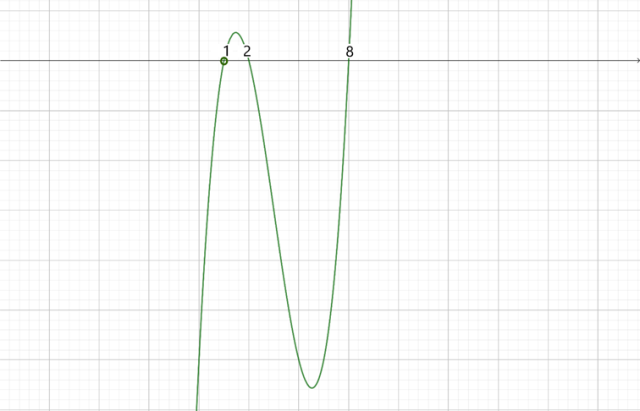 nie należy do dziedziny funkcji. Mając te dane, możesz naszkicować wykres wielomianu. Współczynnik przy najwyższej potędze wielomianu jest dodatni, zatem wykres zacznij rysować od góry od prawej strony. W miejscach zerowych wykres przetnie oś, ponieważ wszystkie pierwiastki są nieparzystokrotne: