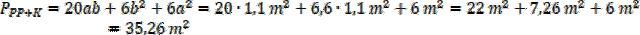 Oblicz powierzchnie mieszkania oraz sumę powierzchni kuchni i przedpokoju dla a = 1 m, oraz b = 1,1 m
