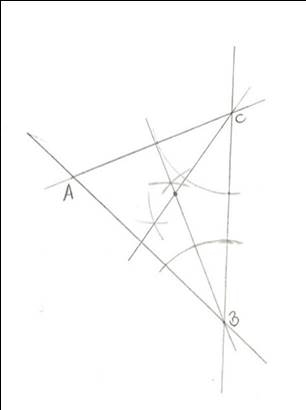 Zbiorem punktów jednakowo odległych od dwóch prostych jest dwusieczna kąta między tymi prostymi. Znajdź punkt przecięcia dwusiecznych dwóch kątów trójkąta ABC.