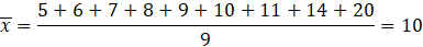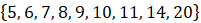 Podaj zbiór składający się z dziewięciu elementów (różnych, dodatnich liczb naturalnych) tak, aby ich średnia arytmetyczna stanowiła dzielnik największego elementu.