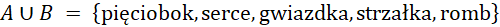 Sumę zbiorów A i B stanowią elementy, które występują w zbiorze A lub w zbiorze B, czyli możesz wziąć elementy, które występują tylko w zbiorze A, tylko w zbiorze B oraz ich część wspólną. W tym przykładzie zbiór B zawiera się w zbiorze A, więc sumą tych zbiorów jest zbiór A.