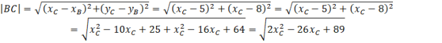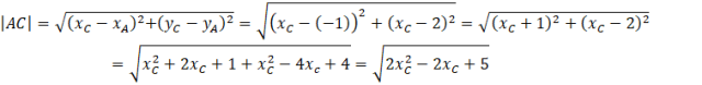 Skoro odległości punktu C od punktów A i B są takie same, to |AC|=|BC|, a skoro tak, to |AC|2 = |BC|2.