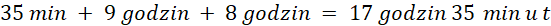 Do pełnej 15 godziny mija 35 minut, od godziny 15 do północy mija 9 godzin, od północy do 8: 00 mija kolejne 8 godzin.