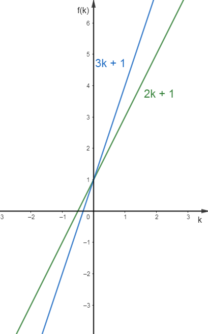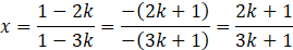 Zauważamy, iż dla dodatnich k funkcja mianownika jest stale większa niż funkcja licznika. Wyrażenie na x jest zatem stale liczbą niecałkowitą dla wszystkich liczb, prócz