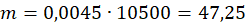 W tym zadaniu znajdź masę sztabki o wymiarach 30 cm x 10 cm x 15 cm i gęstości 10 500 kg/m³.