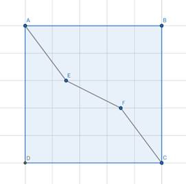 Wskaż dwa dowolne punkty E i F leżące w środku kwadratu i połącz je jedną linią z dwoma naprzeciwległymi wierzchołkami.